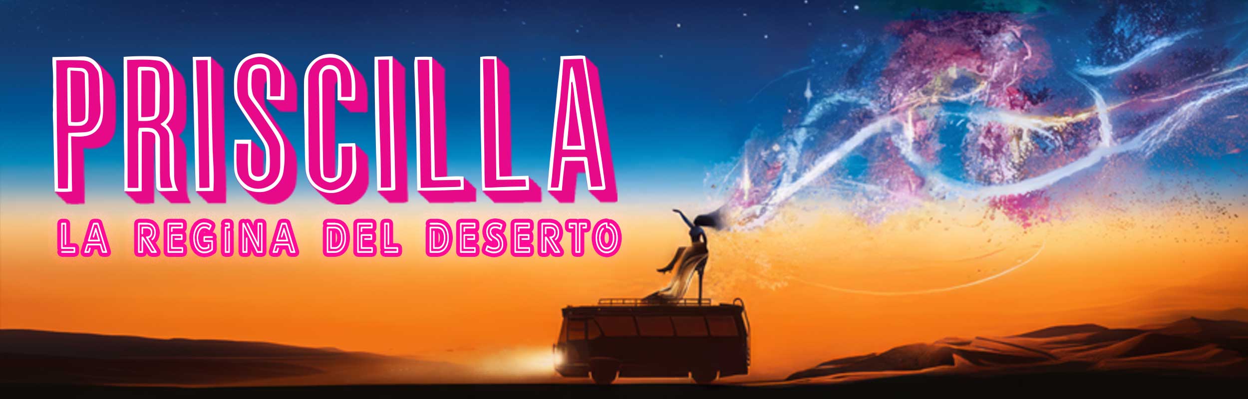 La nuova produzione Peep Arrow e Il Sistina è tratta dal film cult ” Priscilla La Regina del Deserto” – che ha vinto un Premio Oscar e il Grand Prix Du Publique al Festival di Cannes. Il musical racconta di tre amici che viaggiano nel deserto australiano; un’avventura “on the road” a bordo di un vecchio bus chiamato Priscilla, cercando l’amore e l’amicizia… ma dopo una serie di avventure scoprono qualcosa che non avrebbero neanche immaginato! Priscilla è uno strepitoso juke-box musical con grandi hits internazionali come “I Will Survive”; “Finally”; “It’s Raining Men”, “Go West” e tante altre.